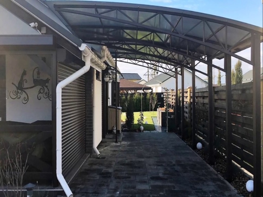 Поэтому компания "НавесСтрой" настоятельно рекомендует не экономить, а усилить каркас навеса для дома более жёсткими профилями с увеличенной толщиной металла и количеством несущих ферм.